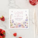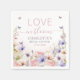 Personalize estes belos guardanapos para chá de panela "amor em flor" com as suas próprias palavras de forma fácil e rápida, basta pressionar o botão Editar Usando Ferramenta de Design para reorganizar e formatar ainda mais o estilo e a disposição do texto. Com exuberantes flores silvestres delicadas em tons pastel de rosa e roxo e borboletas a voar. Todo o texto é editável. Para um visual harmonioso e coordenado, explore a nossa gama de artigos correspondentes disponíveis na loja. (c) The Happy Cat Studio