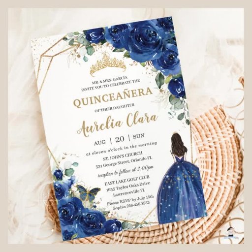 Chic Royal Blue Floral Quinceañera Birthday GoldCriado por The Happy Cat Studio