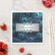 Penas de pavão azul com o bonito casamento do centro de prata e guardanapos de eventos. Você pode adicionar texto para personalizar esses bonitos guardanapos azuis e prateados.