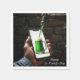 Uma mão segura um smartphone mostrando uma caneca de cerveja verde, enquanto uma torneira parece derramar líquido verde diretamente no telefone. O texto pode ser alterado.