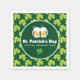 Rua, guardanapos de papel do Dia de Patrick que diz: equipe de bebendo oficial com um nome personalizado. Ilustrado com 2 canecas de cerveja dentro um círculo verde. Um padrão repetitivo com trevas em segundo plano.