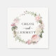 Lindas rosas cor-de-rosa embebidas combinam-se com botões brancos e flores silvestres para criar uma coroa romântica. Os nomes dos casais de casamento estão escritos no centro. Este guardanapo de papel é parte da coleção Summer Romance. Contém muitas modelos DIY que você pode usar para personalizar a papelaria de casamento e sua cerimônia e recepção. Você deve ver um link para ele nesta página. Se você não vir o link ou precisar de ajuda com um item, por favor, entre em contato comigo.