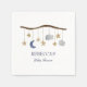 Estes adoráveis guardanapos de chá de fraldas apresentam um móvel de bebês rústicos com imagens noturnas a balançar de um galho de madeira. Todo o texto pode ser personalizado.