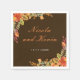 Pretty wedding napkin with autumn fall leaves in orange, yellow and green. Perfect for an autumn fall wedding. The words can be changed to suit your own details or requirements.