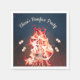 Este guardanapo de papel de fogueira divertido é divertido para qualquer tipo de festa de fogueira. A design apresenta uma fogueira e palitos que estão perfurando marshmallows sobre um fogo quente. O fundo é floresta, com céu azul e luzes cintilantes acima. É excelente para acampar ou uma festa russa ao ar livre.