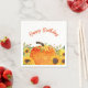 Celebrar no estilo aconchegante do outono com estes guardanapos de aniversário de abóbora rústicos. Apresentando uma abóbora aquarela cercada por girassóis brilhantes e folhagem de outono, eles são perfeitos para festas de aniversário sazonais, celebrações de colheita e encontros temáticos de fazenda