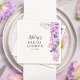 Romantic spring and summer bridal shower with wildflowers in purple, pink and white and lavender all in brushed script typography on an elegant soft light yellow editable background.