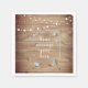 Um guardanapo rústico de papel do país com luzes de cordas acima de um pote de mason vintage cheio de sua mensagem personalizada e flores silvestres delicadas espalhadas em um fundo natural de painel de madeira meteorizada. Perfeito para casamentos, chás de panela, chás de fraldas, batismos, festas de noivado, comemorações de aniversário, graduações, encontros de aniversário e outros eventos especiais ao longo do ano! Projetado por Thisnotme©