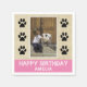 A Pata Rosa Rústica Imprime Aos Filhos O Nome Da Festa de aniversário De Fotos Napkin. O design apresenta uma foto, texto de aniversário feliz, um nome e uma pata preta de cachorro imprime em uma textura bege rústica e fundo rosa. Personalize os guardanapos com o nome do seu filho e a foto do seu filho - insira a sua foto no modelo. Estes guardanapos festas de aniversário são excelentes para uma menina que ama ou tem um cachorro.