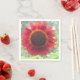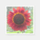 Este guardanapo apresenta um girassol vermelho brilhante. A maioria dos guardanapos tem placas de papel para combinar.