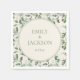 Folhas de eucalipto verde e elegante em guardanapos de papel de noiva. Inclui os nomes da noiva e do noivo e a data do casamento. O texto é personalizável. Entre em contato conosco para obter ajuda com a personalização ou para solicitar a coordenação de produtos.