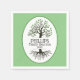 Restituição familiar guardanapos de papel com uma árvore familiar com seu apelido e ano de reunião com senso verde.