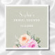 Celebrate the bride-to-be in exquisite style with this Bright Floral Bridal Shower Napkin, a delicate fusion of Sophistication and Charm. Personalize this napkin featuring a captivating Watercolor design adorned with Blush Pink, Lilac, and Peach Roses, exuding an air of romance and Femininity. Against a backdrop of elegant sage green, the soft Greenery accents gracefully frame the intricate floral arrangement, adding a touch of freshness and vitality, making it the perfect accessory for your Roses Bridal Shower Party, Lunch or Picnic.