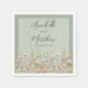 Add a soft, elegant touch to your wedding tables with these nature-inspired wedding napkins. The design features a light sage green background with delicate wildflowers in muted pink, yellow, lavender, and blue, accented by gentle green leaves and stems for a fresh, garden-inspired look.
