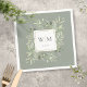 Com delicadas folhas de folhagem em aquarela em um fundo verde sálvia, esses guardanapos de papel botânicos elegantes podem ser personalizados com as iniciais do seu monograma e data especial. Projetado por Thisisnotme©