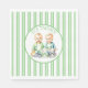 Guardanapos de papel de chá de fraldas, de cor azul e verde, bonitos e verdes, com dois gêmeos filhotes.