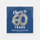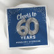 Elegante 60 guardanapos de festa de aniversário com fundo azul na moda que pode ser mudado para qualquer cor, brilho cintilante prateado, o ditado "torce para 60 anos" usando sessenta balões de hellio prateado, seu nome e a data da celebração.