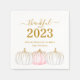 Na moda elegante, entrega de festa de ação de graças! Celebre o dia de graças em estilo com este guardanapo de papel tradicional. Design apresenta "agradecimento por 2023" em tipografia de script em ouro em um fundo branco limpo complementado com abóboras brancas cor-de-rosa-ouro. Personalize este produto adicionando o nome da família ou o texto personalizado. Fácil de personalizar. Feliz Dia de Ação de Graças!