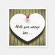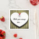 Um coração de papel, preso ao fundo do painel de madeira rústico. Fonte de script manuscrito para personalizar os produtos de acordo com as suas necessidades.