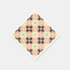 A seamless geometric pattern with cream, beige, and mint green shapes. Bold, dark brown floral designs form a repeating diamond grid. Retro vibe.