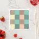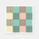 A seamless plaid pattern with alternating pastel squares in turquoise, cream, and beige. Each square is filled with a crisscross grid design, creating a vintage and orderly feel.