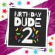Este design de Aniversário do Dude 2 é perfeito para uma festa de segundo aniversário para rapazes que completam dois anos. Apresenta confete de festas coloridas para crianças com design de Aniversário do Dude 2 que o seu homenzinho vai adorar!