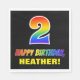 Este divertido, colorido e alegre design de papel de aniversário, guardanapo, apresenta um grande número "2" e a mensagem "FELIZ ANIVERSÁRIO", ambos tendo um gradiente de padrão inspirado no espectro do arco-íris, juntamente com um nome ousado de destinatário personalizado amarelo. O fundo é preto colorido. Os guardanapos de papel com tema de aniversário como este podem ser usados numa festa que comemora o segundo aniversário de alguém. [~Z0000476]