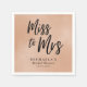 Um guardanapo de papel moderno e chico dizendo Miss à Sra. em uma carta de caligrafia negra.