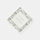 These wedding napkins feature a modern, elegant design with a central rectangular frame bordered by a subtle blue-gray double line. The surrounding geometric pattern includes soft blues, grays, and warm beige tones arranged in a staggered layout that adds texture and movement. The typography is clean and minimalistic, using an uppercase serif font for the names and a lowercase "and" to create a refined contrast. Perfect for formal occasions, these napkins convey a serene and sophisticated atmosphere, making them ideal for weddings or special celebrations.