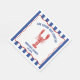 Give bridal showers a nautical touch with personalized napkins. The "She Found Her Lobster" message is fun for bridal showers, but easy to customize with your own message. My realistic style lobster illustrations in red is at the center of these napkins with a spot below to add the event name and date in blue lettering. The text and graphic are set inside of a scalloped, wavy lines frame against a blue and white striped background giving it a nautical look perfect for seaside and seafood themed parties.