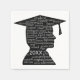 Silhouette of a boy with a graduation cap and word cloud for a graduation on a white background.