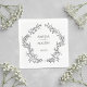 Simple Floral Frame Black and White Paper Wedding Napkins. Celebrate your special day with these elegant wedding paper napkins, beautifully adorned with a delicate floral wreath. The design features a sophisticated script for the couple's names, enclosed within a charming hand-drawn botanical foliage hand drawn style illustration. Below the names, your custom wedding date is elegantly displayed. These napkins add a touch of timeless romance and natural beauty to any wedding reception, perfectly complementing a garden, rustic, or classic wedding theme. Make your celebration unforgettable with these exquisite details. Perfect for the bar area or the dessert or appetizer table.