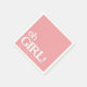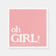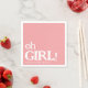 O guardanapo simples de papel de chá de fraldas é perfeito para o seu chá de fraldas. O texto diz "Oh garota!" Você pode personalizar esses guardanapos de chá de fraldas com o nome da futura mãe e a data de chá.