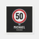 Personalize a sua idade para os carros perfeitos e a festa de aniversário temática dos motoristas. Sinal vermelho de velocidade do tráfego circular com um estilo gráfico moderno. Verifique a coleção correspondente para COORDENAR ITENS. Arte original de PUPSIKU STUDIO. Produto exclusivo a 100%