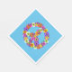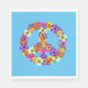 Este guardanapo de papel lança um sinal de paz floral em tons de rosa, turquesa, amarelo, laranja, roxo, verde e preto.