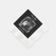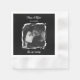 Wedding cocktail napkins with a photo template and place to add bride and groom's names, wedding date and the quote, "Sip, sip hooray!" Black and white filter.