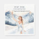 Celebrate the bride in style with these chic Ski Bachelorette Weekend napkins, featuring a glamorous bride on the slopes holding champagne in a winter wonderland setting. Perfect for après-ski celebrations, mountain bachelorette weekends, and stylish bridal gatherings.