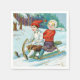 Sleigh riding at Christmas time! Vintage illustration of two cute little children having fun playing in the snow with a sleigh.