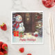 Este é um adorável guardanapo de papel de Natal com uma cena de um bonitinho bonitinho bonitinho bonitão com presentes na porta da frente de uma casa em um estilo de aquarela vintage. O texto do guardanapo pode ser personalizado com o seu próprio nome ou à sua esquerda como está.