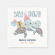 Sob o tema Mar, os guardanapos apresentam uma mãe e tartaruga-do-mar bonitinha com balões, chapéu festivo e um presente. Perfeito para celebrações temáticas náuticas, costeiras e de praia. Os corais, marinhos e cores amarelas são excelentes para uma menina ou um menino. Mostrado aqui com dois nomes para um chá casal, mas pode ser facilmente personalizado com o nome da futura mãe. Arte por KL Stock