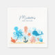 Sob o Chá de fraldas do mar Napkins. Um mundo submarino bonito. Aquático. Vida no oceano. Animais subaquáticos. Água-viva, caranguejo, tartaruga, polvo, coral, peixe-estrela, baleia, âncora. Coleção marinha com criaturas marinhas para raparigas e rapazes