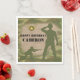 Este guardanapo personalizado apresenta um tema de missão militar. Imagens de soldados de brinquedos do exército verde estão impressas no fundo. Um padrão camuflado borda as imagens.