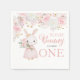 Complete your party table with these elegant bunny floral napkins. Decorated with soft pink watercolor roses, ideal for serving cake at a bunny-themed first birthday. Stylish and practical party supplies for your girl's spring garden-themed celebration.