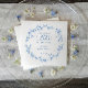 These elegant blue and white bridal shower napkins feature a vintage wildflower toile design inspired by French toile and Hampton style elegance. Personalized with the bride’s name and shower date, the phrase “something blue before I do” is displayed in graceful calligraphy for a timeless and romantic touch. Blending Victorian floral charm with subtle chinoiserie influence, these floral napkins are a beautiful addition to an elegant bridal shower celebration.