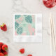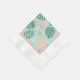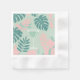 Diseño de servilleta de cóctel, ilustración de estilo art deco con motivos botánicos y florales, tonos pastel suaves de verde menta y rosa claro, siluetas de hojas tropicales y un contorno sutil de una copa de cóctel, sin texto, sobre un fondo liso.