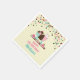 Feliz aniversário personalizou guardanapos de papel com um tema de sorvete doce. Ilustrado com um bar de sorvete de chocolate, sundae de 3 colheres com uma cereja no topo, e um float de morango com chantilly. Pequenos morangos e cerejas. Fundo amarelo pálido. Refrescante, guloseimas de verão.