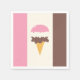 Cone de sorvete napolitana em sabores de morango, baunilha e chocolate. Destacado com listras verticais cor-de-rosa, creme e chocolate napolitanos nas laterais deste guardanapo de coquetel de papel, personalizado. É um design doce para qualquer um que adora comer sorvete! Personalize-o para um aniversário, uma festa de sorvete ou qualquer ocasião!