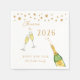 Personalized Gold and white popping Champagne bottle and glasses toasting to a New Year Party napkins.