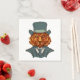 Um tigre vestindo um terno azul-turquesa e cartola é retratado contra um fundo suave, dando uma aparência elegante e caprichosa. A expressão séria do animal é enfatizada pelo traje formal.