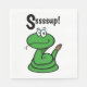 Engraçado cobra de desenho verde. Ele tem olhos ovais grandes com sobrancelhas levantadas. Um sorriso viciado com a língua a sair. Seu corpo longo e coberto de óleo tem um punhal na ponta da cauda. Sobre a cobra em letras negras está uma peça sobre a palavra Sup! Lendo Ssssup!